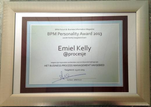Helemaal bijzonder was dat ik in 2013 de titel ‘BPM personality of the year’ van het BPM forum in de wacht sleepte.