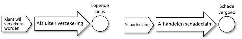 Een proces bestaat om een resultaat te leveren. Een resultaat dat waarde heeft voor een klant. In dit geval zijn dat 2 heel verschillende resultaten. In het ene geval wil de klant verzekerd zijn (omdat hij het risico zelf te groot vindt om te dragen of omdat het moet van de wet).